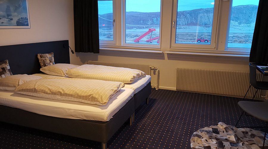 Adjoined to the airport the Kangerlussuaq Hotel offers 3 to 4-star accommodation in warm rooms that are a good size and have private bathrooms. The hotel cafeteria serves a full breakfast buffet and the supermarket is across the street. Wi-fi is available for purchance in the rooms.